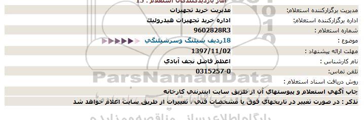 اداره برگزارکننده استعلام: اداره خرید تجهیزات هیدرولیک