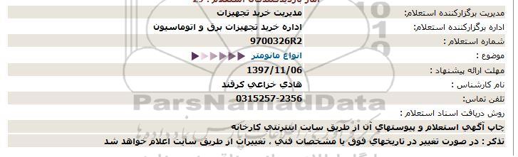 اداره برگزارکننده استعلام: اداره خرید تجهیزات برق و اتوماسیون
