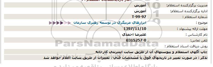 مدیریت برگزارکننده استعلام:آموزش