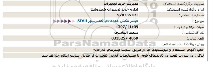 موضوع : SEAH فیلتر مکش مقدماتی کمپرسور