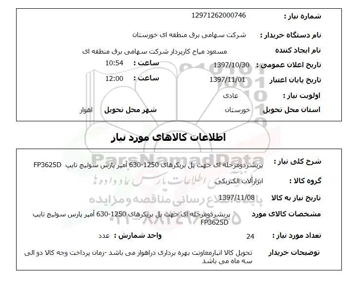 نام دستگاه خریدار: شرکت سهامی برق منطقه ای خوزستان
