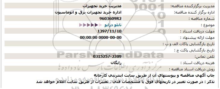اداره برگزارکننده استعلام: اداره خرید تجهیزات برق و اتوماسیون