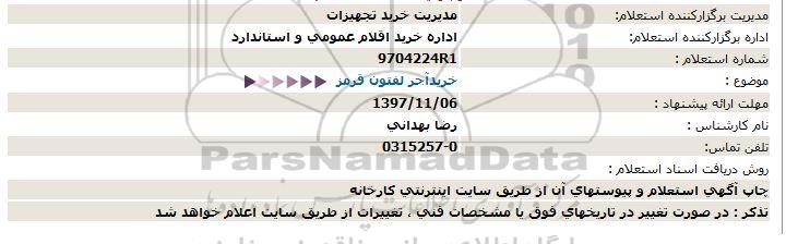 اداره برگزارکننده استعلام: اداره خرید اقلام عمومی و استاندارد