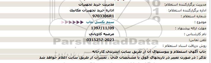 شماره استعلام : 9703306R1
