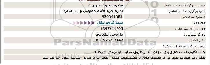 اداره برگزارکننده استعلام: اداره خرید اقلام عمومی و استاندارد
