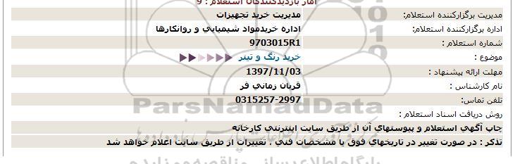 اداره برگزارکننده استعلام: اداره خرید مواد شیمیایی و روانکارها