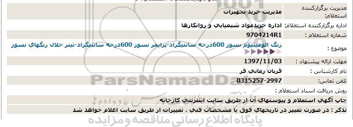 اداره برگزارکننده استعلام: اداره خریدمواد شیمیایی و روانكارها