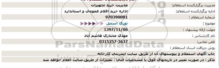 اداره برگزارکننده استعلام: اداره خرید اقلام عمومی و استاندارد