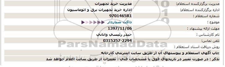 اداره برگزارکننده استعلام: اداره خرید تجهیزات برق و اتوماسیون