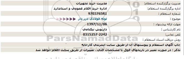 اداره برگزارکننده استعلام: اداره خرید اقلام عمومی و استاندارد