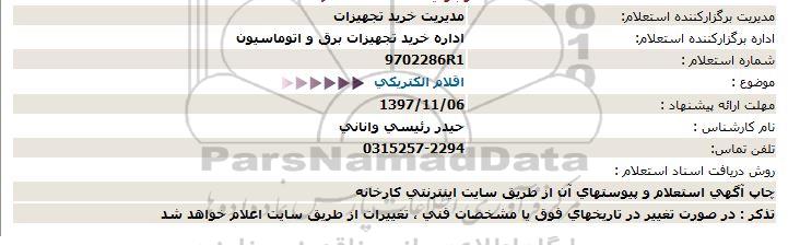 اداره برگزارکننده استعلام: اداره خرید تجهیزات برق و اتوماسیون