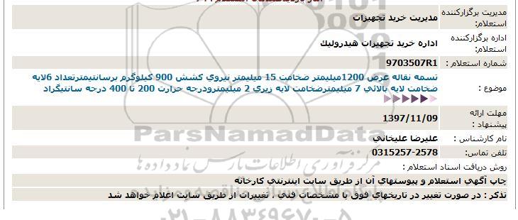 اداره برگزارکننده استعلام: اداره خرید تجهیزات هیدرولیک