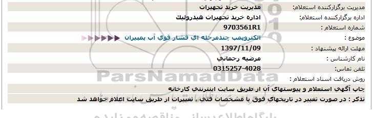 استعلام الکتروپمپ چند مرحله ای فشار قوی, استعلام ، استعلام الکتروپمپ چند مرحله ای فشار قوی