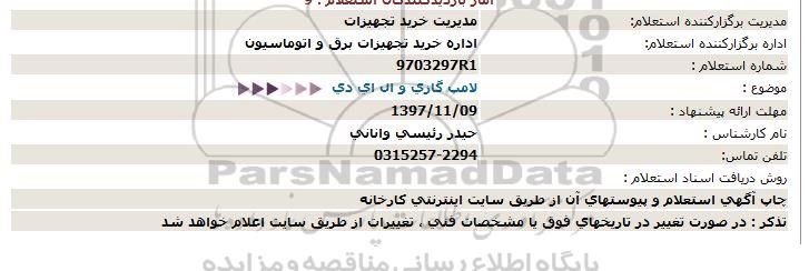 اداره برگزارکننده استعلام: اداره خرید تجهیزات برق و اتوماسیون