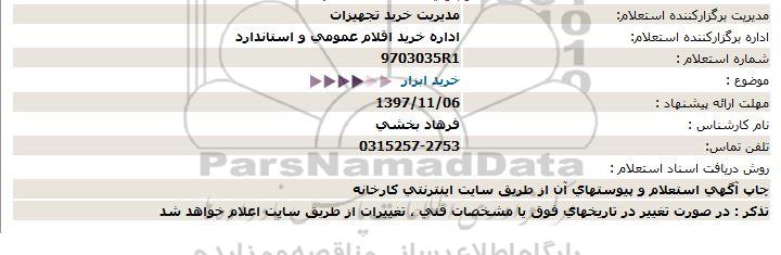اداره برگزارکننده استعلام: اداره خرید اقلام عمومی و استاندارد
