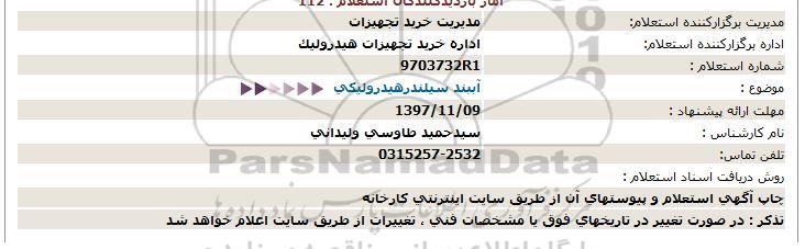 اداره برگزارکننده استعلام: اداره خرید تجهیزات هیدرولیك