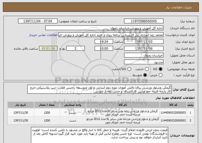 نام دستگاه خریدار:اداره کل آموزش و پرورش خراسان رضوی