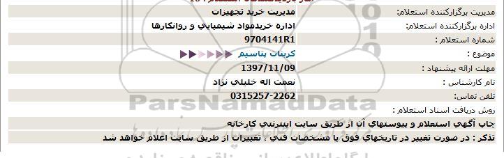 اداره برگزارکننده استعلام : اداره خرید مواد شیمیایی و روانکارها