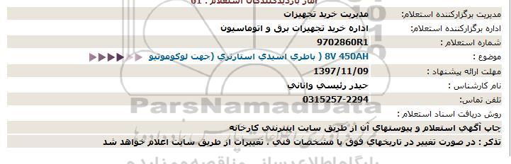 موضوع : باطری اسیدی استارتری جهت لوکوموتیو 8v 450ah