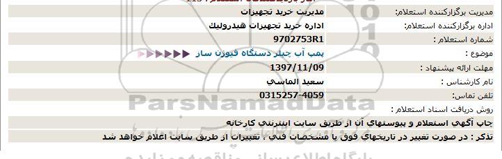 اداره برگزارکننده استعلام: اداره خرید تجهیزات هیدرولیک