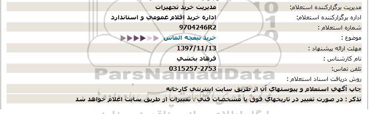 اداره برگزارکننده استعلام: اداره خرید اقلام عمومی و استاندارد