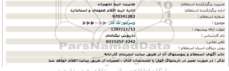 اداره برگزارکننده استعلام: اداره خرید اقلام عمومی و استاندارد
