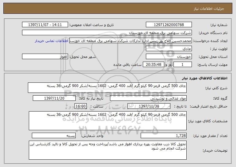 نام دستگاه خریدار:شرکت سهامی برق منطقه ای خوزستان
