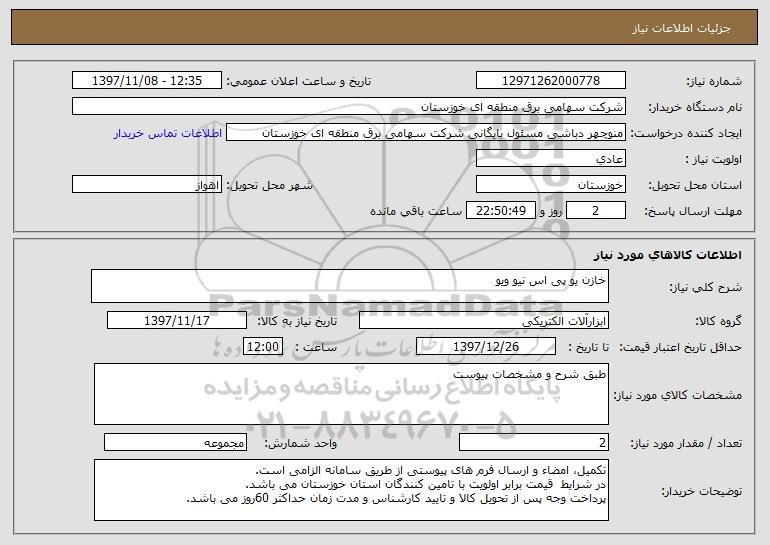 نام دستگاه خریدار:شرکت سهامی برق منطقه ای خوزستان