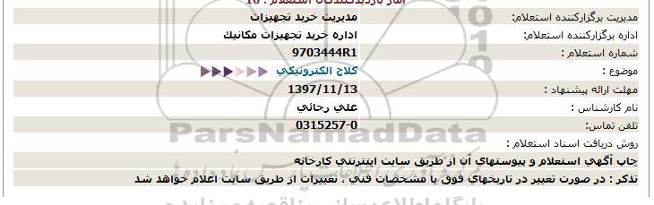 اداره برگزارکننده استعلام:  اداره خرید تجهیزات مكانیک