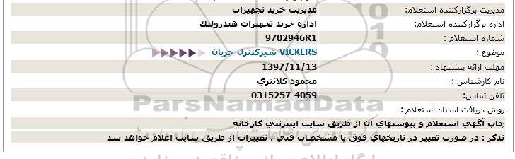 اداره برگزارکننده استعلام: اداره خرید تجهیزات هیدرولیک