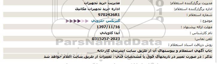 اداره برگزارکننده استعلام:  اداره خرید تجهیزات هیدرولیک