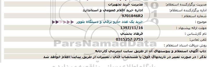 اداره برگزارکننده استعلام: اداره خرید اقلام عمومی و استاندارد