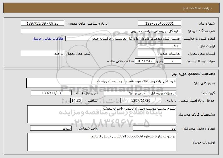شرح کلی نیاز: خرید تجهیزات وابزارهای موسیقی بشرح لیست پیوست