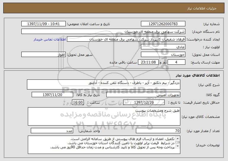 نام دستگاه خریدار:شرکت سهامی برق منطقه ای خوزستان