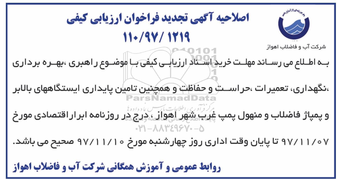 اصلاحیه آگهی تجدید فراخوان ارزیابی کیفی ؟