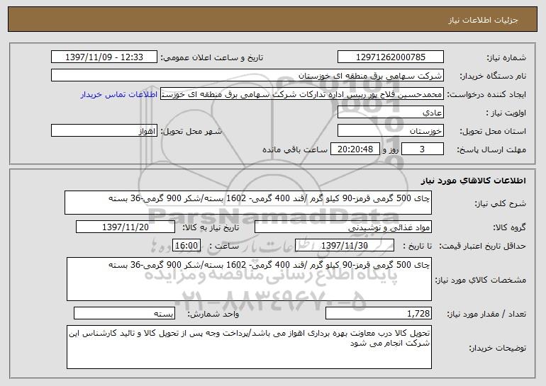 نام دستگاه خریدار:شرکت سهامی برق منطقه ای خوزستان