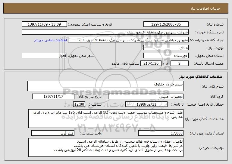 نام دستگاه خریدار:شرکت سهامی برق منطقه ای خوزستان