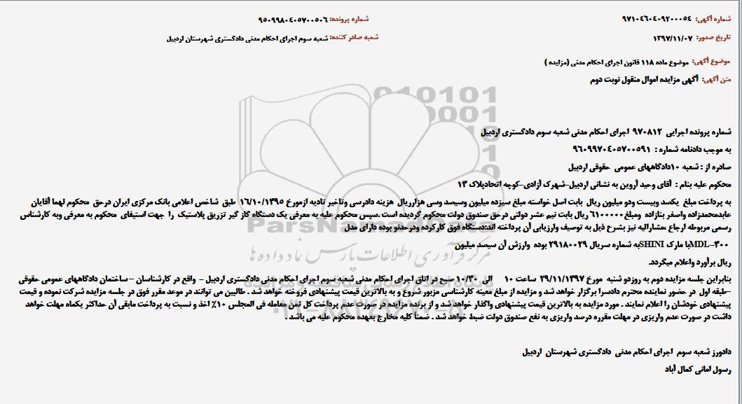 دادورز شعبه سوم اجرای احکام مدنی دادگستری شهرستان اردبیل
