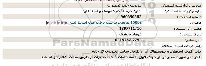 اداره برگزارکننده استعلام: اداره خرید اقلام عمومی و استاندارد