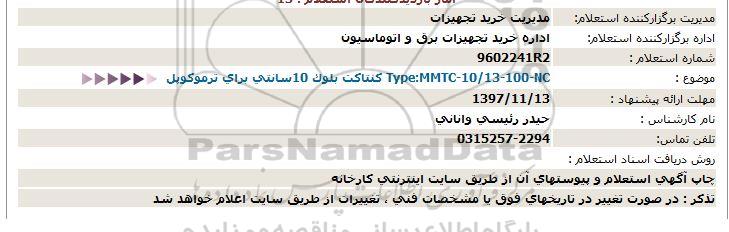 موضوع : Type:MMTC-10.13-100-NC کنتاکت بلوک 10سانتی برای ترموکوپل