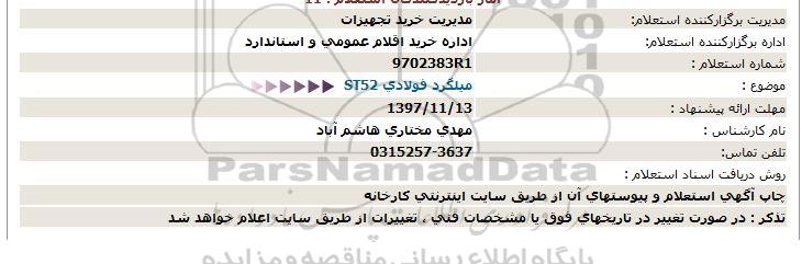 استعلام میلگرد فولادی ST52, استعلام , استعلام میلگرد فولادی ST52