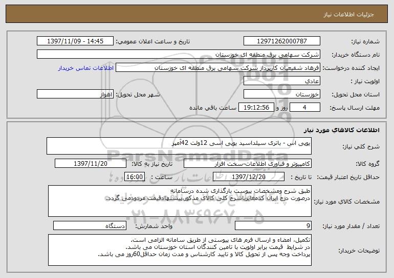 نام دستگاه خریدار:شرکت سهامی برق منطقه ای خوزستان