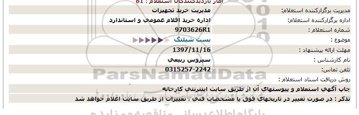 اداره برگزارکننده استعلام اداره خرید اقلام عمومی و استاندارد