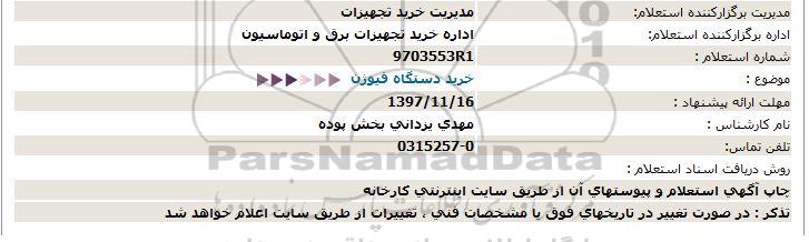 اداره برگزارکننده استعلام اداره خرید تجهیزات برق و اتوماسیون