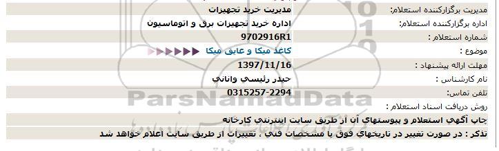 اداره برگزارکننده استعلام: اداره خرید تجهیزات برق و اتوماسیون