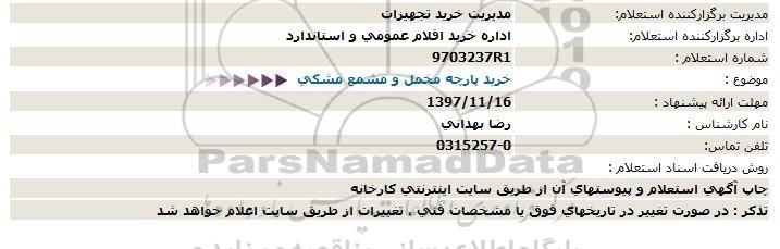 اداره برگزارکننده استعلام: اداره خرید اقلام عمومی و استاندارد