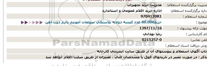 اداره برگزارکننده استعلام: اداره خرید اقلام عمومی و استاندارد