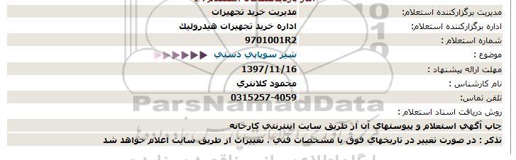 استعلام شیر سوپاپی دستی, استعلام ، استعلام شیر سوپاپی دستی