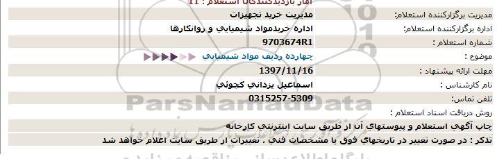 اداره برگزارکننده استعلام:     اداره خریدمواد شیمیایی و روانکارها