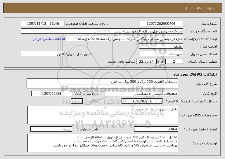 شرح کلی نیاز: دستمال کاغذی 200 برگ و 300 برگ سافتلن
